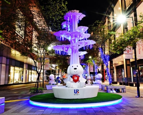 耘嵿榮幸參與此次規畫,與執行,以陪伴為題、吉祥物Mykonos為主角企劃發想,以「一輩子的好朋友」為核心概念,並融入聯邦銀行一直以來對弱勢團體、藝文界支持與幫助的形象,延伸出「用愛陪伴,灌溉希望」的主展裝置物-許願樹…